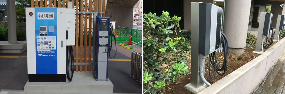 設置例:大型マンションへの普通充電器の設置、某大手カーディーラー様の急速充電設備、外資車メーカー様の急速充電インフラ設備の構築等